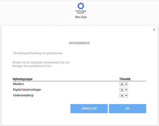 Du tilmelder dig Fødevareallergilisten under punktet "Min selvbetjening" -> "Nyhedsbreve.